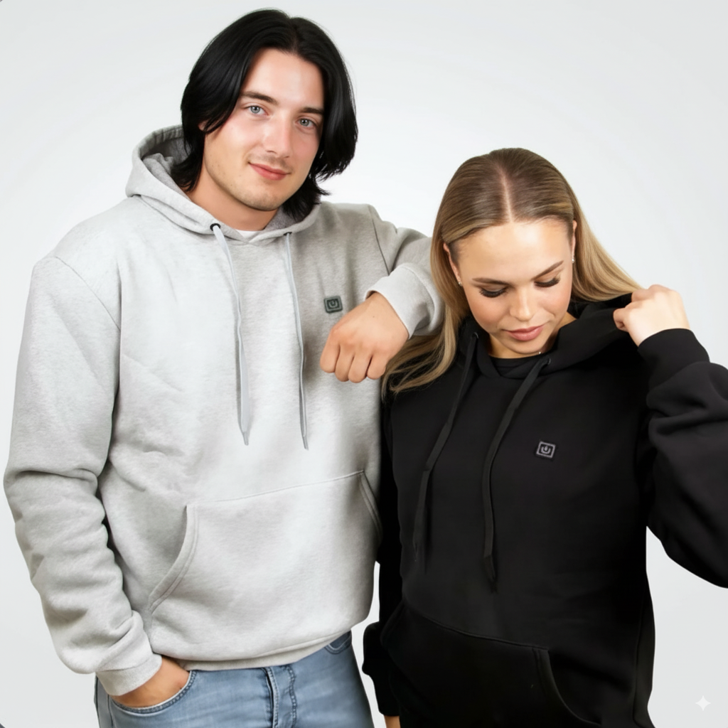 The HeatHoody uniquely combines premium comfort with integrated, adjustable heating technology. It's not just a hoodie; it's your personal, portable warmth solution, unmatched in coziness and convenience.